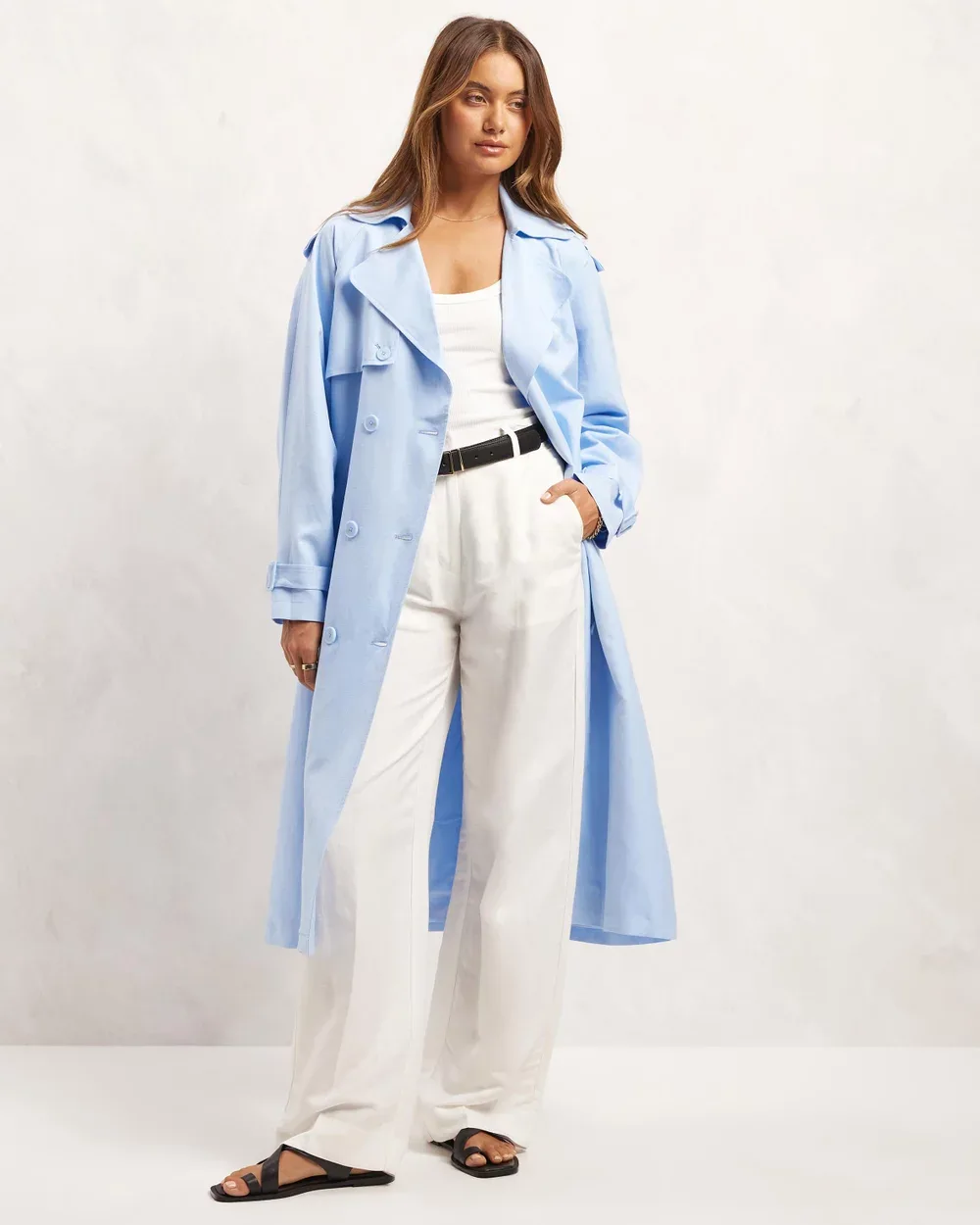 Who said a trench coat has to be neutrals? Go bold with this AERE Linen Blend Trench Coat in a delightful periwinkle colour.
