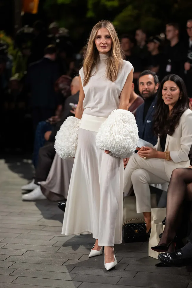 Politician and businesswoman, Allegra Spender, looked super chic as she attended the Carla Zampatti show, which honoured her late mother’s legacy in the industry alongside her sister, designer Bianca Spender.