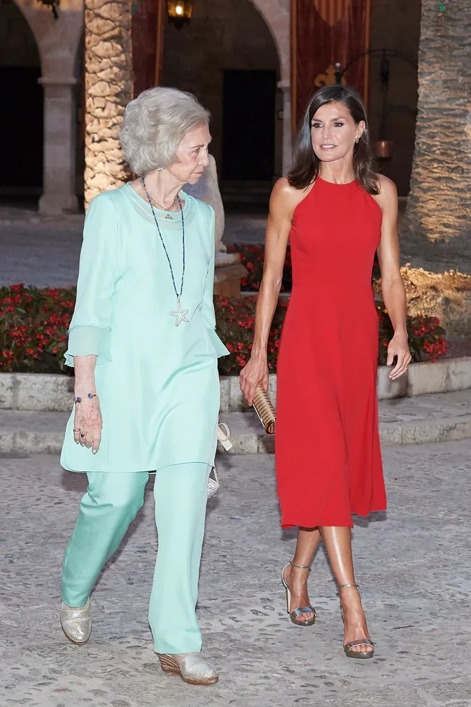 A siren as always, Letizia stunned in a bright red midi-dress worn to a dinner for authorities at the Almudaina Palace. With Queen Sofia wearing a gorgeous teal ensemble, the pair made the ultimate style statement.