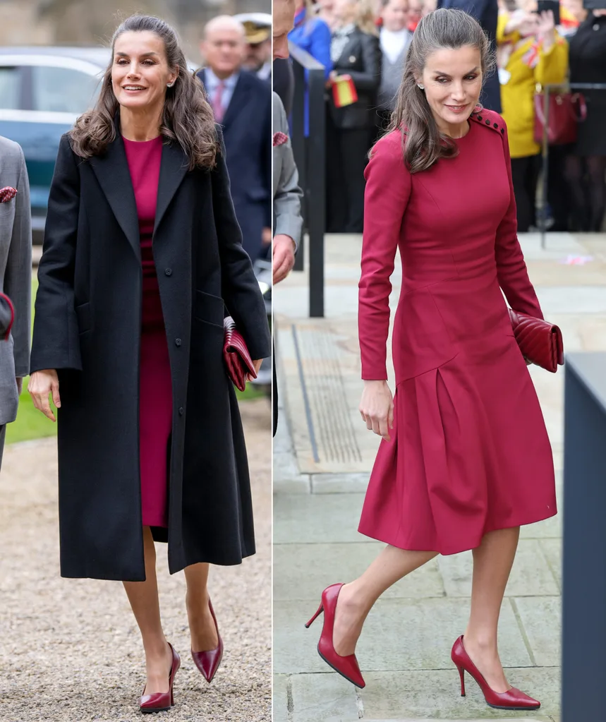 Red is definitely her colour! Letizia’s dress stole the show when she visited the UK in 2022.