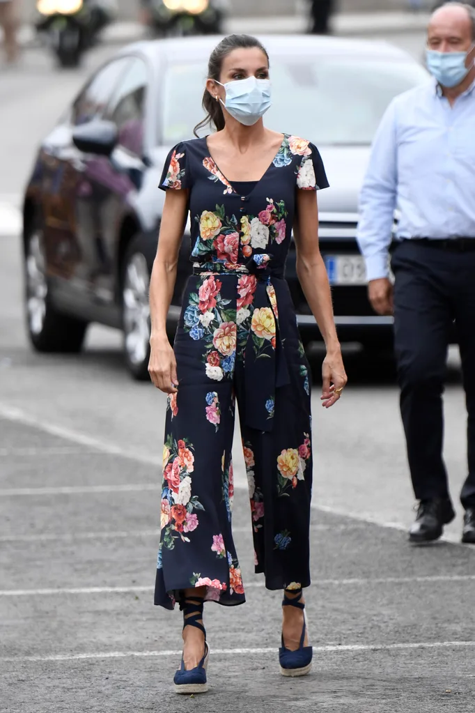 A royal in a floral jumpsuit, yes please! Letizia donned this vibrant outfit at Spain’s Torrelavega market in 2020.