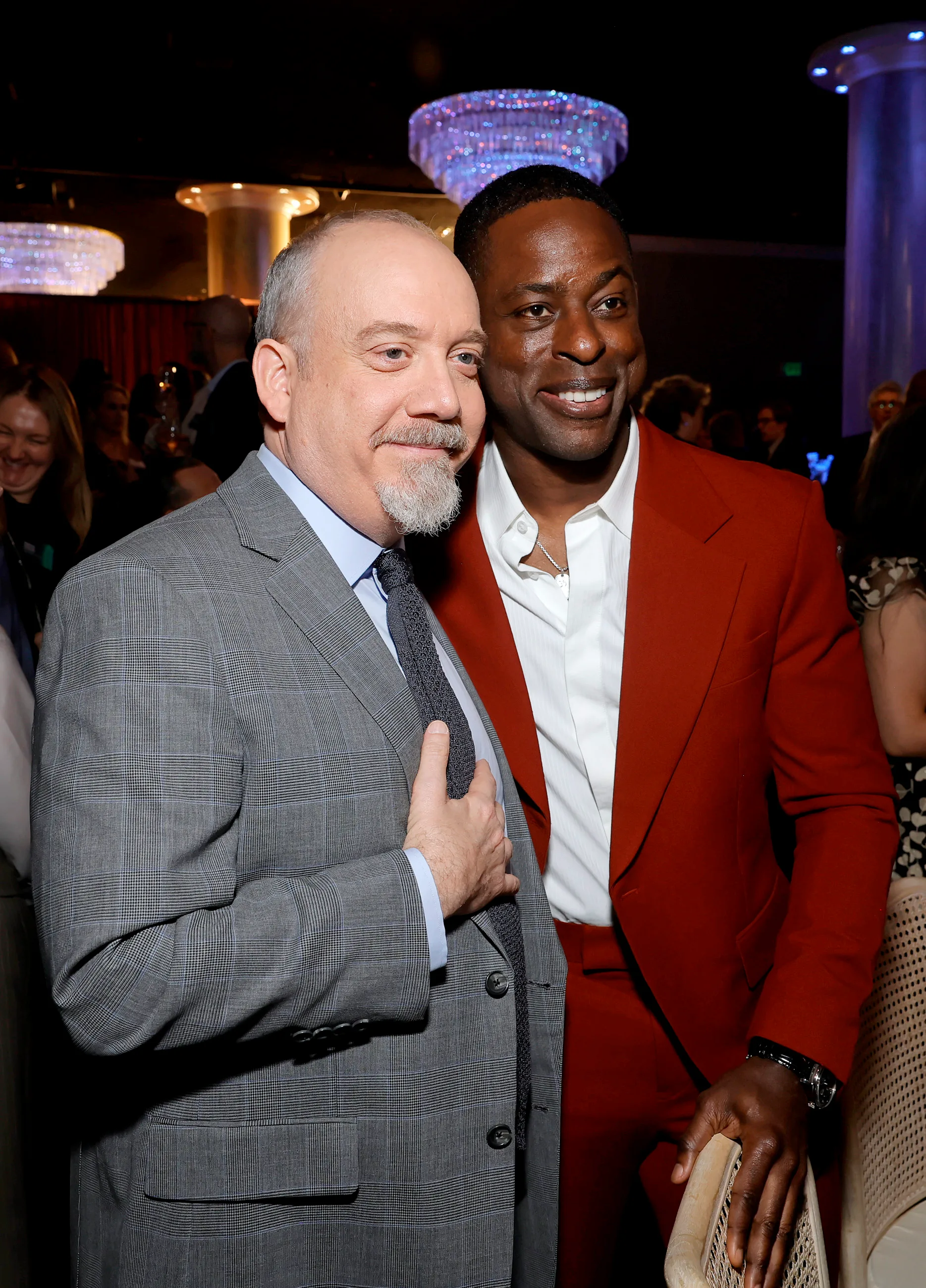 Paul Giamatti and Sterling K Brown steered clear of traditional black suits for the Oscar Nominees Luncheon and instead opted for grey and red respectively.