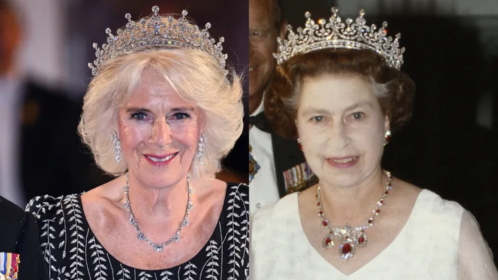 And for the event, Camilla paired her black and silver Bruce Oldfield gown with the Girls of Great Britain and Ireland tiara; a tiara Elizabeth wore numerous times during her reign (in fact, several British and Commonwealth banknotes and coins feature a depiction of Elizabeth wearing this tiara).