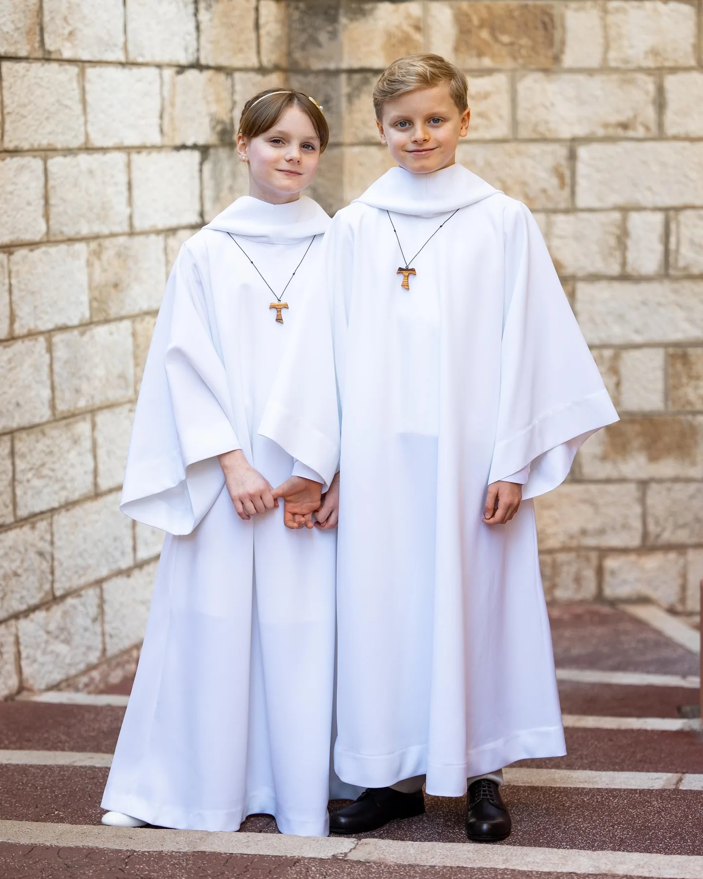 Prince Jacques looked dapper in a deep navy suit, while his twin Gabriella looked super sweet in a simple white dress and matching shoes.