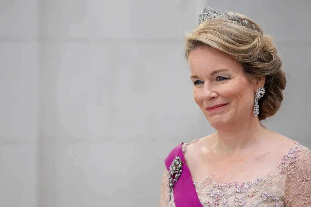 In the evening, Their Majesties hosted a state banquet at the Castle of Laeken in honour of the President and First Lady. Queen Mathilde of Belgium donned a powder pink gown designed by Pierre Gauthier. She complemented her attire with the Brabant Tiara, commonly known as the Laurel Tiara. This gown was not new to the Queen; she had previously worn it during a gala dinner in November 2016 as part of a state visit to the Netherlands.