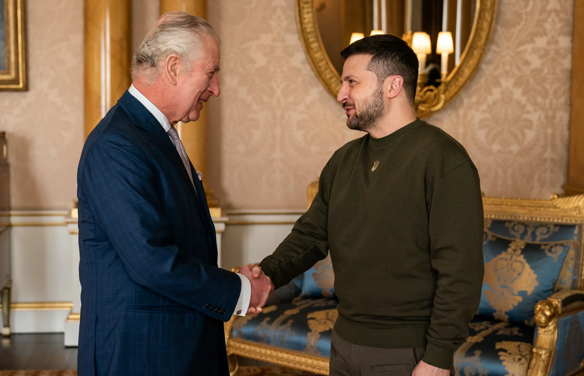 In February 2023, King Charles met Ukraine President Volodymyr Zelenskyy at Buckingham Palace to express his personal support for the people of Ukraine. The UK has provided a range of economic, humanitarian and defensive military assistance to Ukraine, and imposed several sanctions on Russia and Belarus since the conflict began.